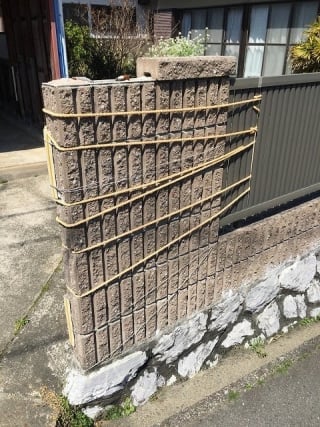 倒壊の恐れがあるので、お施主さんがロープで固定しています。